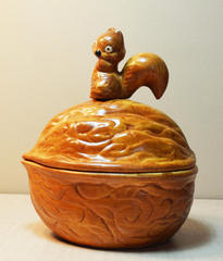 Dish: Brown Ceramic Nut Shaped Dish