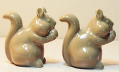 Salt and Pepper Shakers: Brown Stoneware Squirrels